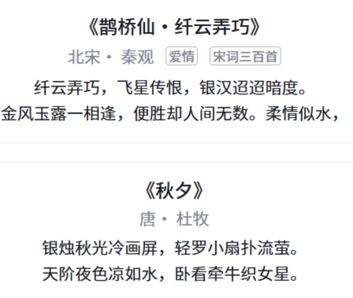 题目:七夕除了“中国情人节”,还有三个雅称是什么?