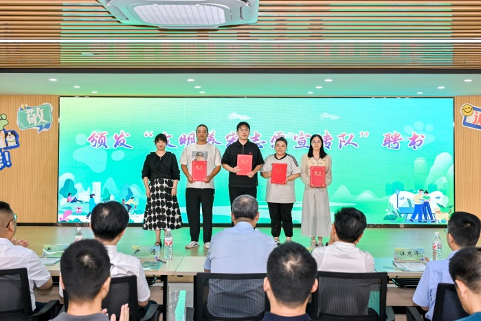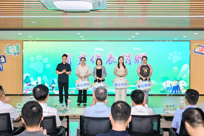 在“送吉祥”环节,社区书记为文明养宠宣传志愿者颁发聘书,爱心商家为社区捐赠文明养宠实用工具;线下观众凭入场券、线上观众凭网络留言参与现场抽奖,共同领取“爱宠礼包”。