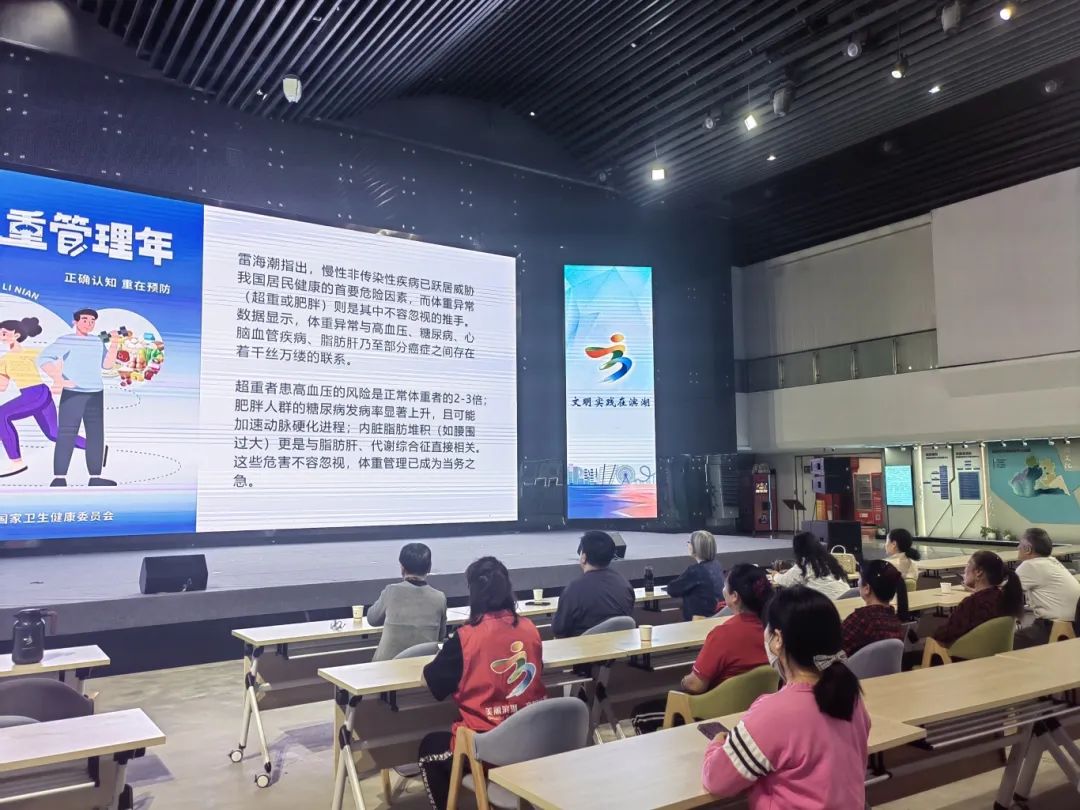 市民潘女士:我以前总觉得体重管理是爱美的事儿,听了徐主任的讲座才明白,这实实在在是关系到生命质量的一门“必修课”。数据显示,超重的人患高血压的风险是普通人的2到3倍,肥胖不仅会让动脉硬化加快,腰围超标的人,得脂肪肝的风险更是高得让人警醒。这次讲座让我对减肥有了全新的认识。减体重不单单是调整体态,更是预防代谢综合征、心脑血管疾病的重要办法。科学减脂得从多方面下手,合理管理饮食、坚持规律运动,必要时还可以借助医学手段,可不能再像以前那样盲目节食了,伤身体不说,效果也不长久。