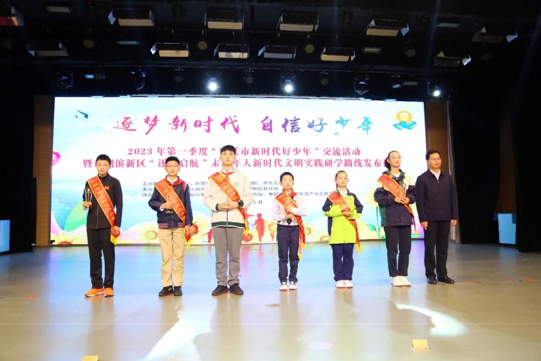 为进一步落实立德树人根本任务,深化拓展“扣好人生第一??圩印毕盗薪逃导疃?,引导广大青少年厚植爱党爱国情怀,争做新时代好少年,5月6日上午,由宿迁市文明办、市教育局、团市委、市妇联、市关工委主办的2023年第一季度“宿迁市新时代好少年”发布交流活动在湖滨新区正式举行。